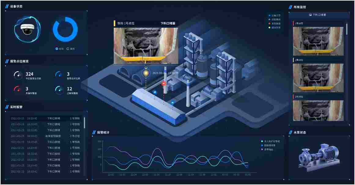 基于人工智能、物联网、大数据等技术手段,智能视频分析系统可作为企业的安全生产辅助工具,帮助企业实现运煤车辆有序管理、封闭式煤场自燃监测预警、输煤系统设备在线测温、输煤皮带运行缺陷检测、作业人员安全防护等业务应用。